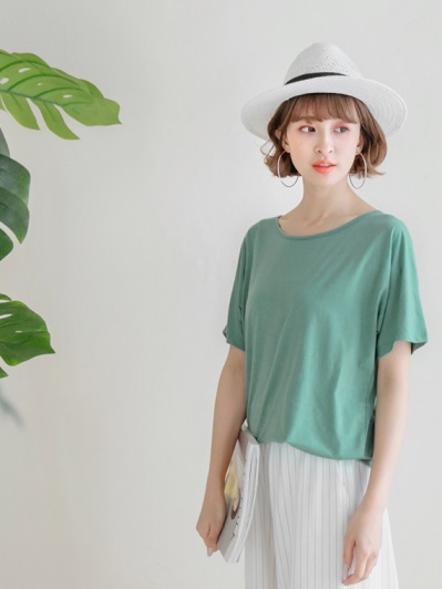 橫條紋花朵圖案荷葉袖口上衣 .2色