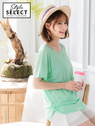 圓領純色上衣X條紋背心兩件式上衣