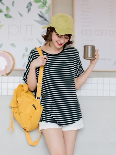 台灣製造.橫條紋寬版彈性蝙蝠袖上衣