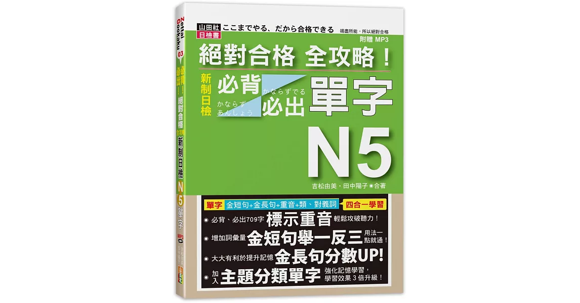 博客來-絕對合格 全攻略!新制日檢N5必背必出單字(20K+MP3)訂購網址: https://www.books.com.tw/exep/assp.php/87926/products/0010833196?utm_source=87926&utm_medium=ap-books&utm_content=recommend&utm_campaign=ap-201906