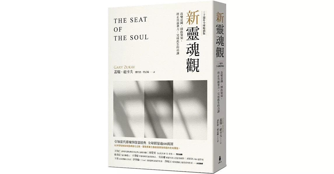 商品描述: 書名:新靈魂觀(30週年全球暢銷版):改變意圖,開啟覺知,終止負面業力,完成此生功課,原文名稱:The Seat of the Soul,語言:繁體中文,ISBN:9789863597124,頁數:336,出版社:木馬文化,作者:蓋瑞.祖卡夫,譯者:廖世德,蔡孟璇,出版日期:2019/10/30,類別:宗教命理