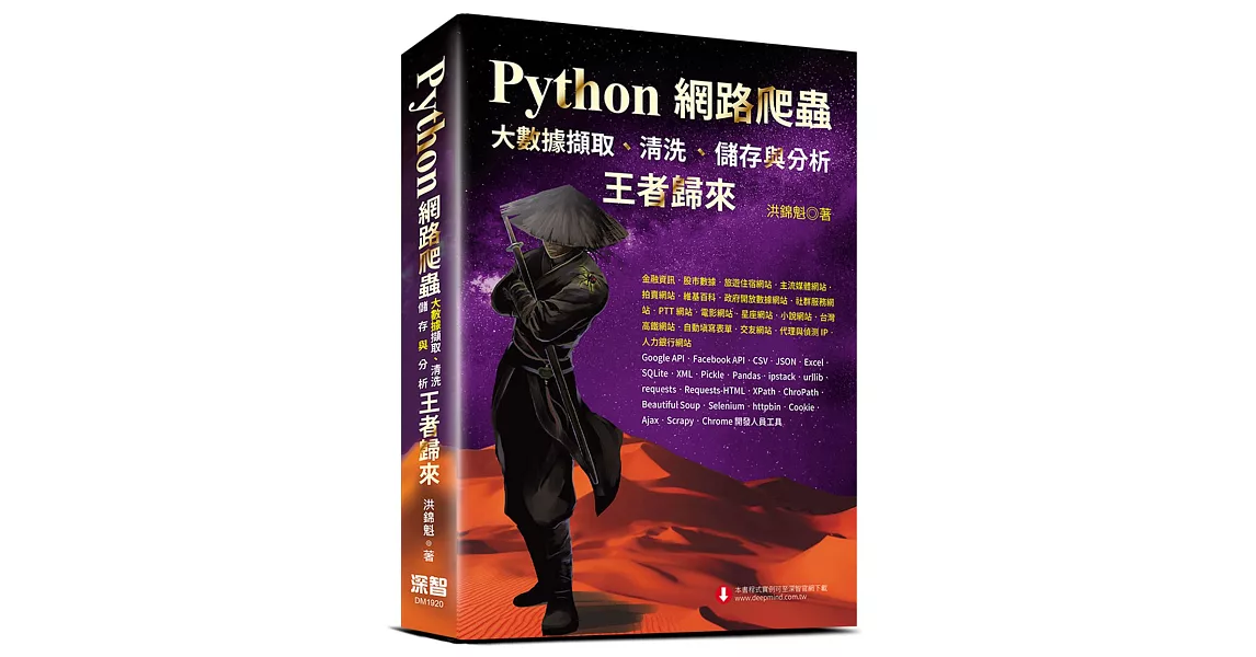 博客來-Python網路爬蟲:大數據擷取、清洗、儲存與分析:王者歸來訂購網址: https://www.books.com.tw/exep/assp.php/87926/products/0010836667?utm_source=87926&utm_medium=ap-books&utm_content=recommend&utm_campaign=ap-202002