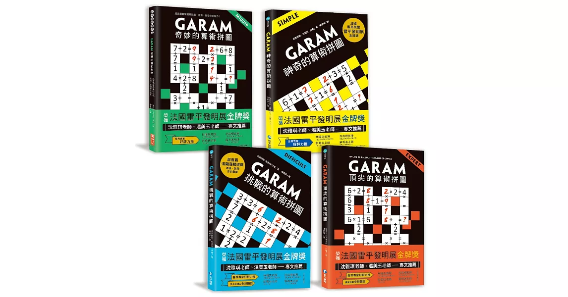 博客來-練出數理腦!GARAM算術拼圖完整版套書:八歲以上就可以玩!源自法國,風靡歐美日韓,有助於數感&邏輯力養成的數學遊戲訂購網址: https://www.books.com.tw/exep/assp.php/87926/products/0010844368?utm_source=87926&utm_medium=ap-books&utm_content=recommend&utm_campaign=ap-202002