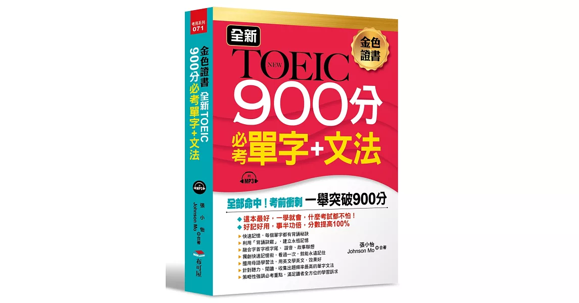 博客來-全新TOEIC 900分必考單字+文法:全部命中,輕鬆突破900分(附MP3)訂購網址: https://www.books.com.tw/exep/assp.php/87926/products/0010833999?utm_source=87926&utm_medium=ap-books&utm_content=recommend&utm_campaign=ap-201906