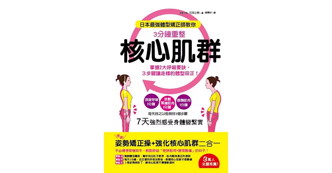 博客來-日本最強體型矯正師教你:3分鐘重整核心肌群:掌握2大呼吸要訣,3步驟讓走樣的體型回正!訂購網址: https://www.books.com.tw/exep/assp.php/87926/products/0010733799?utm_source=87926&utm_medium=ap-books&utm_content=recommend&utm_campaign=ap-202003