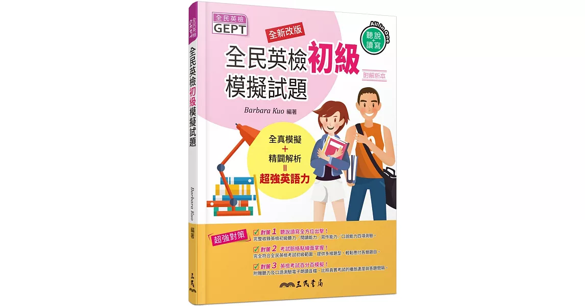 商品描述: 書名:全民英檢初級模擬試題(附解析)(修訂三版),語言:繁體中文,ISBN:4712780666708,頁數:384,出版社:三民,作者:Barbara Kuo,出版日期:2020/03/20,類別:語言學習