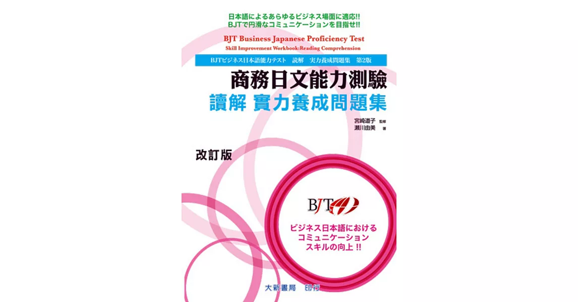 商品描述: 書名:商務日文能力測驗 讀解 實力養成問題集 改訂版,原文名稱:BJTビジネス日本語能力テスト 読解 実力養成問題集 第2版,語言:繁體中文,ISBN:9789863211860,頁數:128,出版社:大新書局,作者:瀬川由美,出版日期:2020/03/15,類別:語言學習
