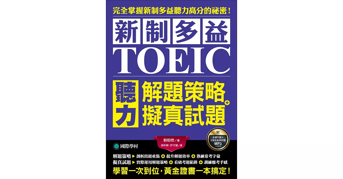 博客來-新制多益TOEIC聽力解題策略 + 擬真試題:完全掌握新制多益聽力高分的祕密!學習一次到位,黃金證書一本搞定!(雙書裝+2MP3)訂購網址: https://www.books.com.tw/exep/assp.php/87926/products/0010835343?utm_source=87926&utm_medium=ap-books&utm_content=recommend&utm_campaign=ap-201906