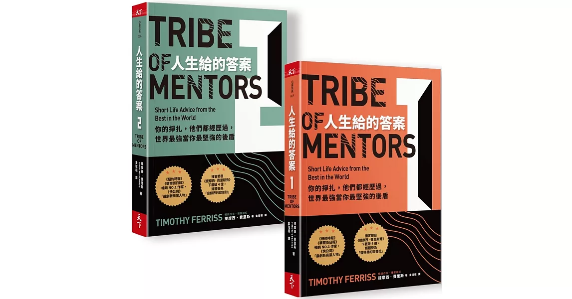 商品描述: 書名:人生給的答案I + 人生給的答案II 套書:你的掙扎,他們都經歷過,世界最強當你最堅強的後盾,原文名稱:Tribe of Mentors: Short Life Advice from the Best in the World,語言:繁體中文,ISBN:4717211027172,頁數:752,出版社:天下雜誌,作者:提摩西‧費里斯,譯者:金瑄桓,出版日期:2020/02/04,類別:商業理財