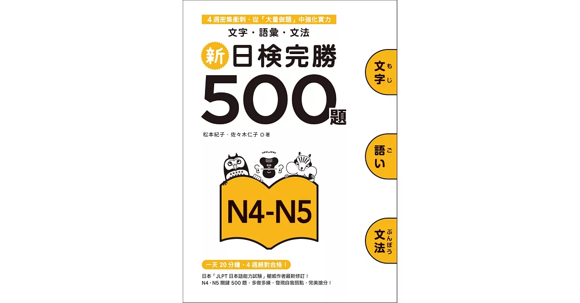 博客來-新日檢完勝500題N4-N5:文字.語彙.文法訂購網址: https://www.books.com.tw/exep/assp.php/87926/products/0010700440?utm_source=87926&utm_medium=ap-books&utm_content=recommend&utm_campaign=ap-202002