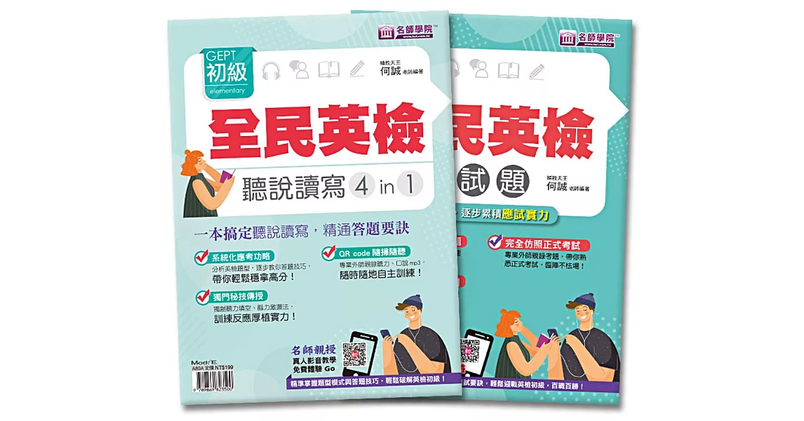 商品說明: 全民英檢初級聽說讀寫4in1+模擬試題套書(2本)