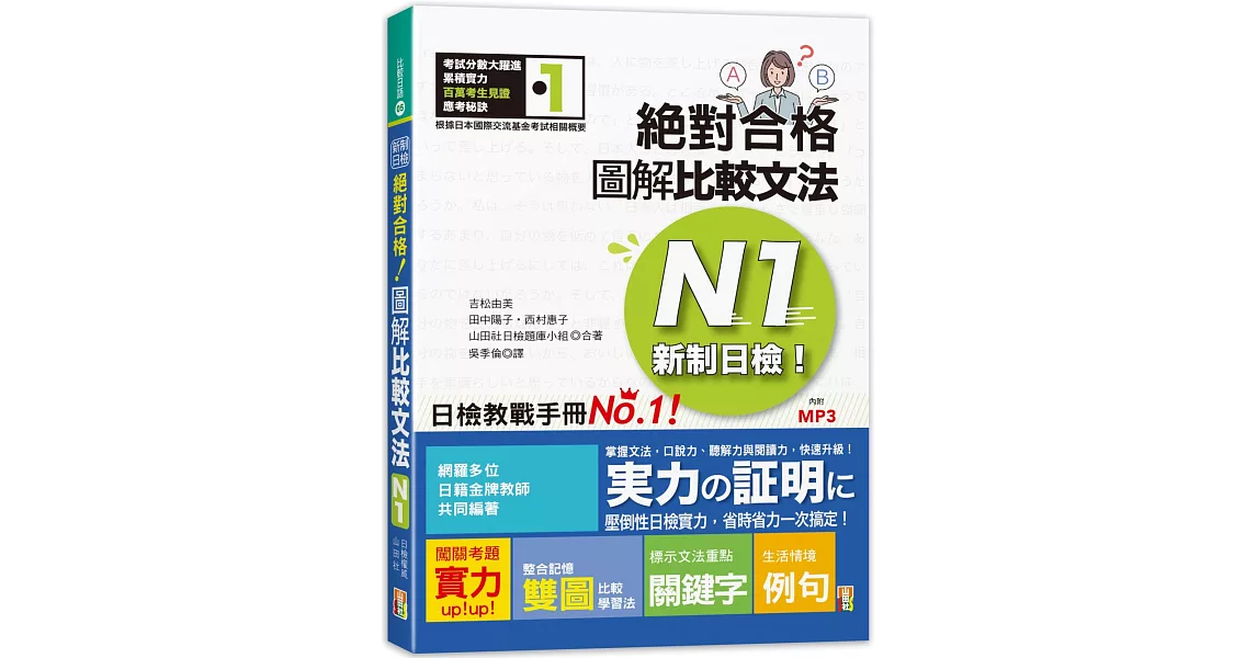 博客來-新制日檢!絕對合格 圖解比較文法N1(25K+MP3)訂購網址: https://www.books.com.tw/exep/assp.php/87926/products/0010865746?utm_source=87926&utm_medium=ap-books&utm_content=recommend&utm_campaign=ap-201906