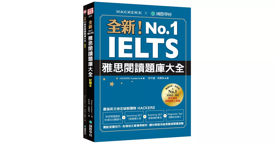 博客來-全新!IELTS 雅思閱讀題庫大全 :獨創速讀技巧,各領域文章精準解析,讓你輕鬆突破高難度閱讀測驗(附英式、美式單字發音QR 碼線上音檔)訂購網址: https://www.books.com.tw/exep/assp.php/87926/products/0010861092?utm_source=87926&utm_medium=ap-books&utm_content=recommend&utm_campaign=ap-201906
