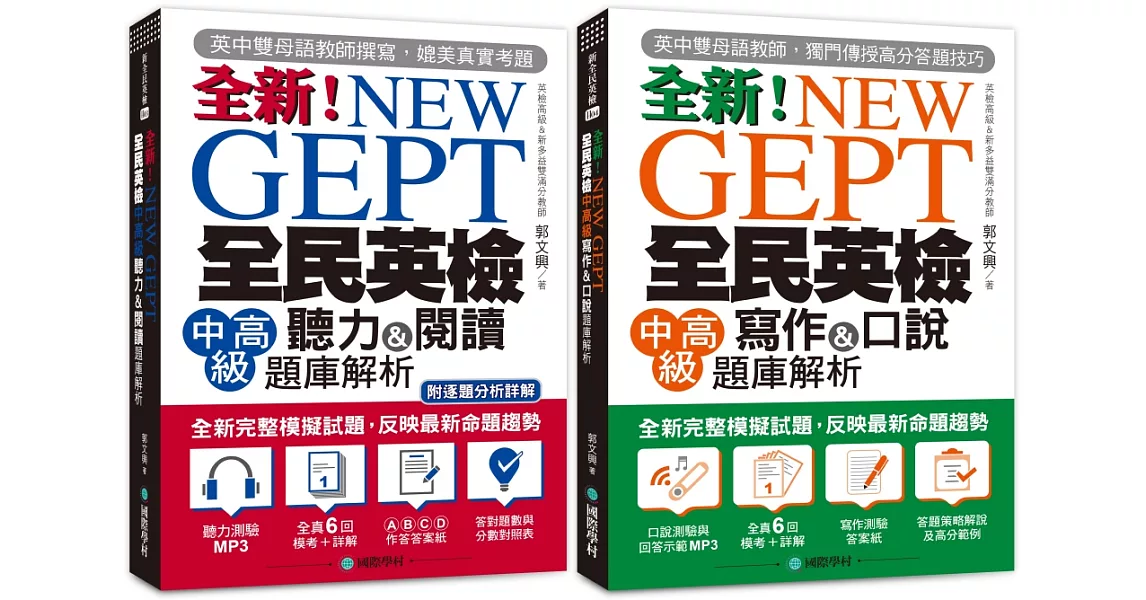 博客來-全新!NEW GEPT全民英檢中高級 初試/複試題庫解析【博客來獨家套書】(附2MP3)訂購網址: https://www.books.com.tw/exep/assp.php/87926/products/0010864545?utm_source=87926&utm_medium=ap-books&utm_content=recommend&utm_campaign=ap-201906