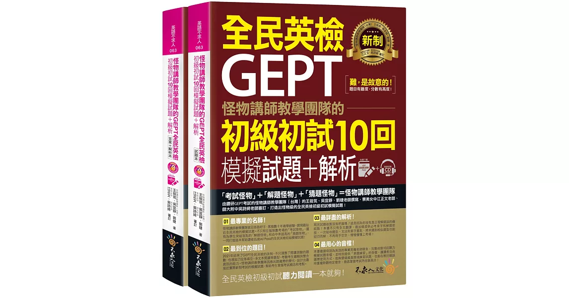 博客來-怪物講師教學團隊的GEPT全民英檢初級初試10回模擬試題+解析(2書+整回/單題雙模式MP3+VRP虛擬點讀筆App+防水書套)訂購網址: https://www.books.com.tw/exep/assp.php/87926/products/0010866610?utm_source=87926&utm_medium=ap-books&utm_content=recommend&utm_campaign=ap-201906