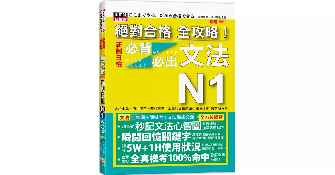 博客來-絕對合格 全攻略!新制日檢N1必背必出文法(20K+MP3)訂購網址: https://www.books.com.tw/exep/assp.php/87926/products/0010862746?utm_source=87926&utm_medium=ap-books&utm_content=recommend&utm_campaign=ap-201906