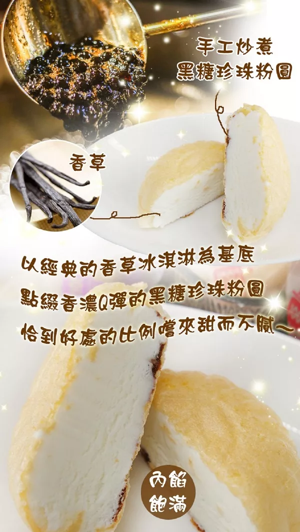 商品說明: 預購《老爸ㄟ廚房》摩納雪Q冰淇淋-抹茶白玉紅豆x3顆+黑糖珍珠x3顆(70g/顆)