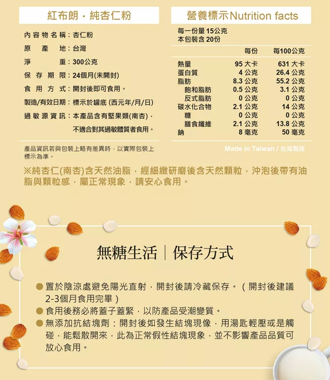 博客來-《紅布朗》純杏仁粉(300g 罐)訂購網址: https://www.books.com.tw/exep/assp.php/87926/products/N000985106?utm_source=87926&utm_medium=ap-books&utm_content=recommend&utm_campaign=ap-202002