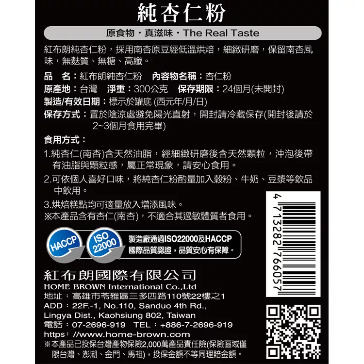 商品描述: 《紅布朗》純杏仁粉(300g/罐)