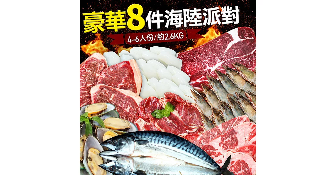 商品描述: 【優鮮配】中秋烤肉豪華8件海陸派對(約4-6人份/約2.6kg)免運組無下單5個工作天到貨