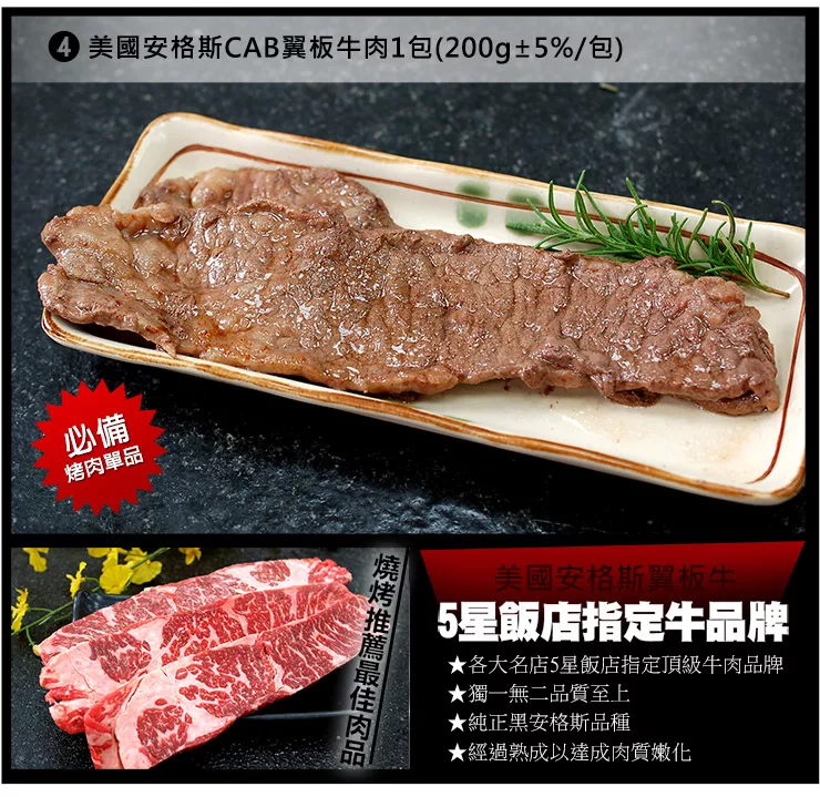 商品描述: 【優鮮配】中秋烤肉全牛饗宴(厚切沙朗+霜降牛+嫩肩牛+翼板牛)免運組無下單5個工作天到貨