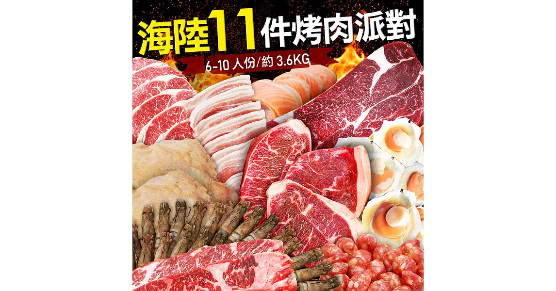 商品說明: 【優鮮配】中秋烤肉海陸11件派對(約6-10人份/約3.6kg)免運組無下單5個工作天到貨
