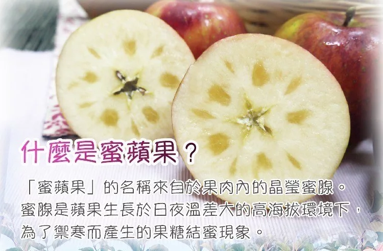 商品描述: 產地新鮮直送:★預計到貨日為2020年12月5日至12月10日,恕不指定到貨日無毒種植 武陵蜜蘋果在高海拔(約2200公尺)的高山氣候,溫差將近10度的冷熱交替,使得蜜蘋果如此好吃。雖然外表沒有進口蘋果的鮮豔亮麗,口感相當的爽脆並帶有水果應該有的微微果酸味道;地區溫差大,每株的蘋果樹結實狀況不盡相同,因此並非每一株樹的蘋果都會結蜜,但還是一樣好吃。日夜溫差高達20度,孕育香甜蜜蘋果每年秋天,都……