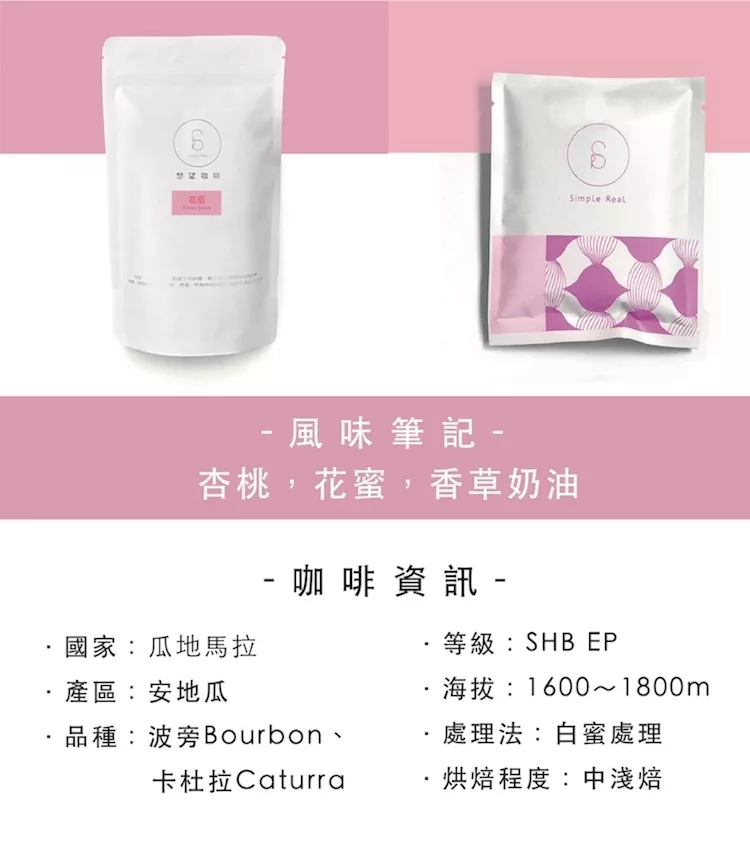 商品描述: 綻放花中女神的香甜花香,喜歡花香系咖啡的朋友請別錯過!這款咖啡擁有的醇厚口感不酸不苦、恰到好處,夾帶豐郁飽滿的香氣變化,並有著蜜糖般的甘美喉韻,是一款相當獨特的咖啡。來自瓜地馬拉最為知名的安提瓜產區,火山肥沃的土壤加上知名莊園的嚴謹製程,讓瑰麗的「花后咖啡豆」滿足各位偏好花香的想望,藉由熱水的沖煮散逸咖啡之花的香氣,絕對令人驚艷。因應近期咖啡豆訂單成長,熱銷豆預先備豆子,咖啡豆新鮮烘焙,庫存皆為3……