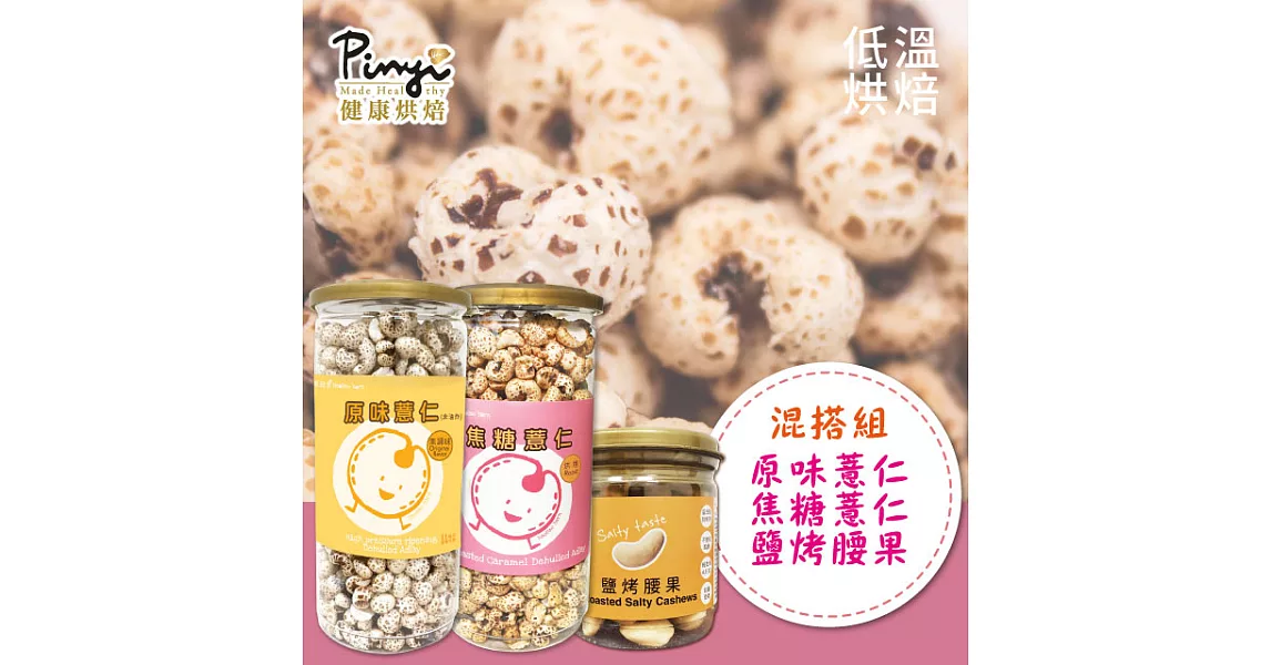 你在找博客來-【品益生技】低溫烘焙-甜心爆紅薏仁混搭組-焦糖150g*1+原味55g*1+鹽烤腰果200g*1哪裡買嗎?