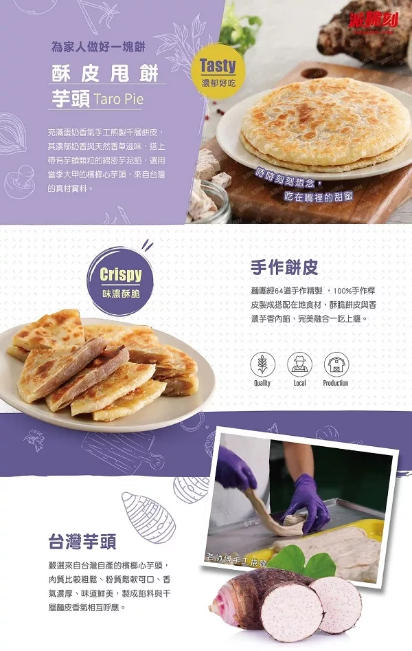 博客來-《派脆刻》酥皮芋頭甩餅(4片 包,共3包)訂購網址: https://www.books.com.tw/exep/assp.php/87926/products/N011888817?utm_source=87926&utm_medium=ap-books&utm_content=recommend&utm_campaign=ap-202002