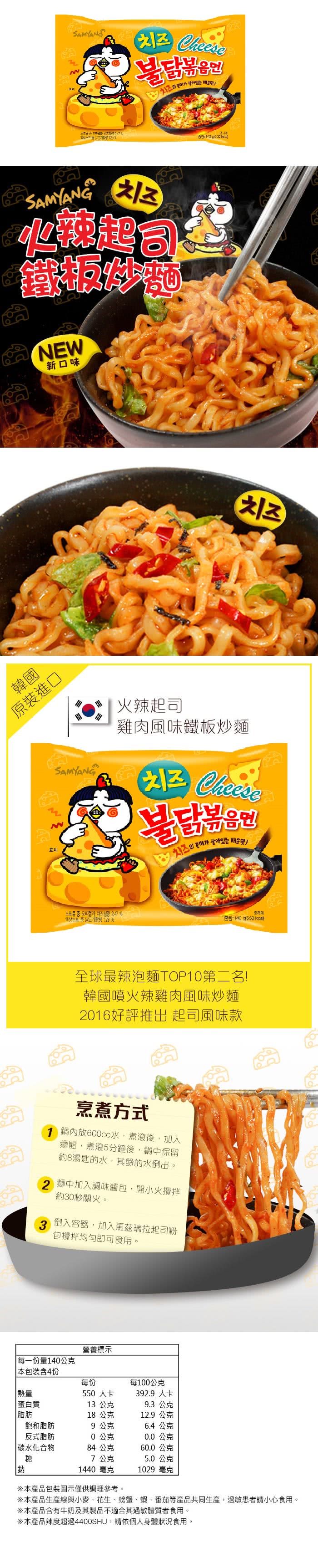 【Samyang三養】起司火辣雞肉鐵板炒麵(香濃起司 最火紅韓國泡麵 搶購商品)內容描述: