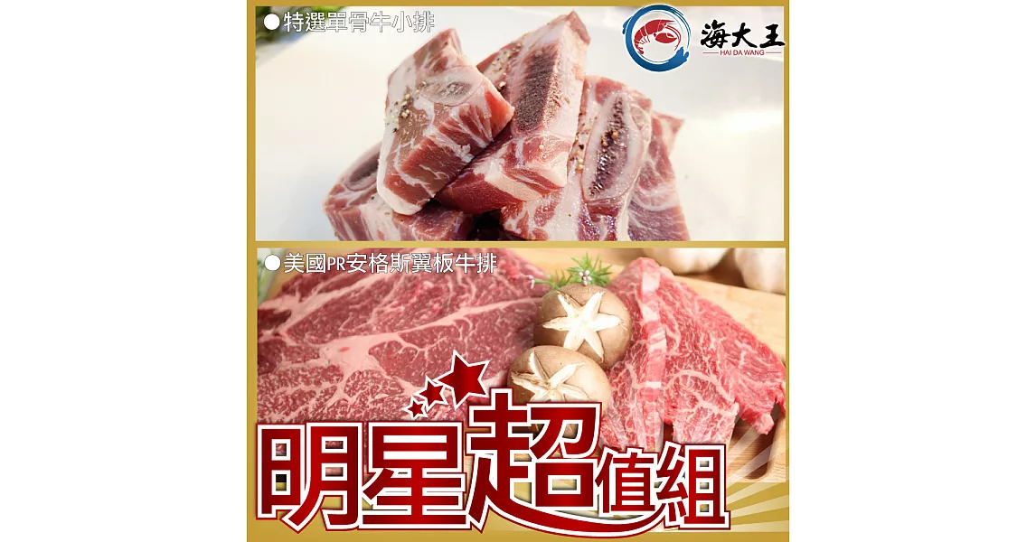 商品描述: 【海大王】明星超值E組(牛單骨牛小排*4+翼板牛排*4)