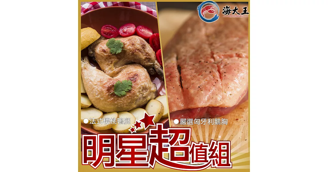 你在找博客來-【海大王】明星超值Z組(即期-法式櫻桃鴨腿*3+即期-匈牙利鵝胸*3)哪裡買嗎?