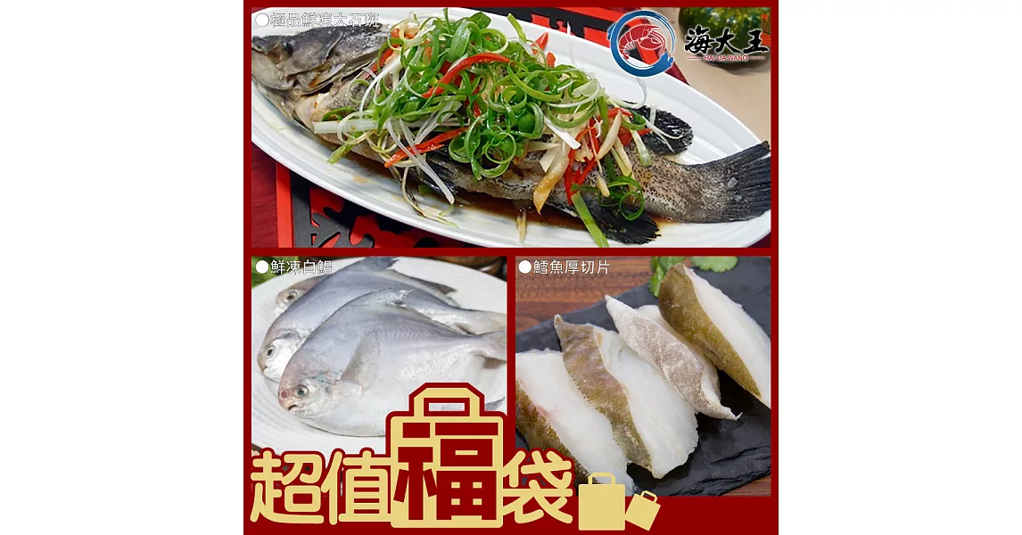 你在找博客來-【海大王】超值福袋X組(鮮凍白鯧*1+ 極品鮮凍大石斑*1+鱈魚厚切片*3)哪裡買嗎?
