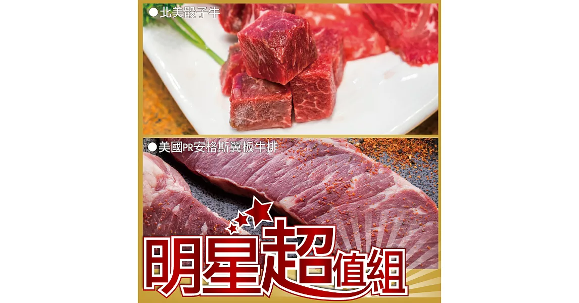 商品描述: 【海大王】明星超值F組(骰子牛*4+翼板牛排*4)