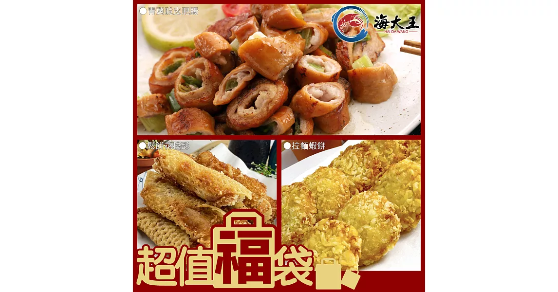 你在找博客來-【海大王】超值福袋S組(脆皮肥腸*1+鬆餅花枝酥*1+拉麵蝦餅*1)哪裡買嗎?