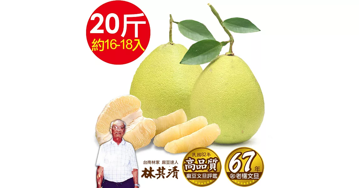 商品描述: 預購-【台南林家】66年在地老欉麻豆文旦! 產地直送1箱(20台斤/箱 16-18顆)