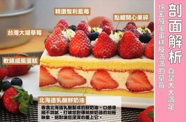 商品描述: ★知名美食部落客Joyce食尚樂活推薦!!! 北海道雪藏草莓蛋糕 ︱北海道直送乳酪+25顆以上大湖草莓製作︱堅持冷藏配送,維持草莓的最佳口感【食感旅程Palatability】產品內容物與規格說明/保固資訊:生鮮食品不適用於消費者保護法第19條,並不享有7天鑑賞期