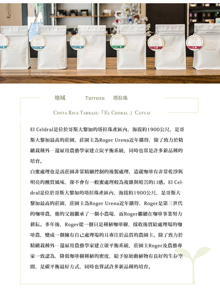 →→→→更多詳細”哈亞咖啡【快樂生活系列】哥斯大黎加 塔拉珠「艾爾賽德拉莊園」卡度艾種 白蜜處理咖啡豆 200g”介紹請點我