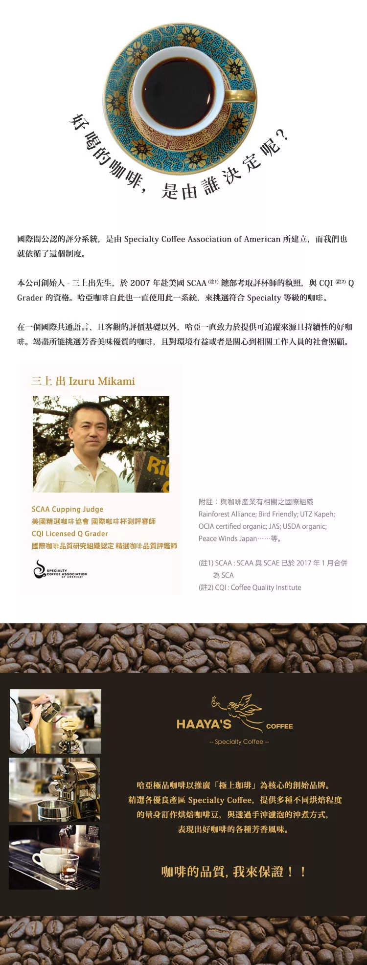 商品描述: 商品簡介:哈亞咖啡:產品內容物與規格說明/保固資訊:內容量(g/ml):200g內容物成份:100%咖啡豆(SPECIALTY&PREMIUMGRADEBEANS)熱量:40kcal/100g每份營養成份:蛋白質1.54G/10G、脂肪0.98G/10G、碳水化合物7.5G/10G、鈉0.3MG/10G食品添加物:無添加保存期限:18個月有效日期:請見包裝日期保存方法:避免存放於高溫多濕的環境訂購……