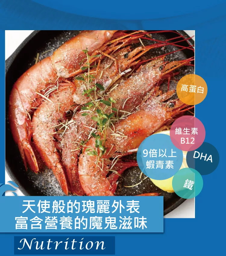 商品描述: 【海大王】超值拼盤T組(天使紅蝦*1+活凍鮮甜白蝦*1)