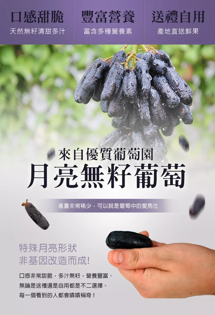 →→→→更多詳細”【優鮮配】月亮無籽葡萄2包(1kg/包)免運組”介紹請點我
