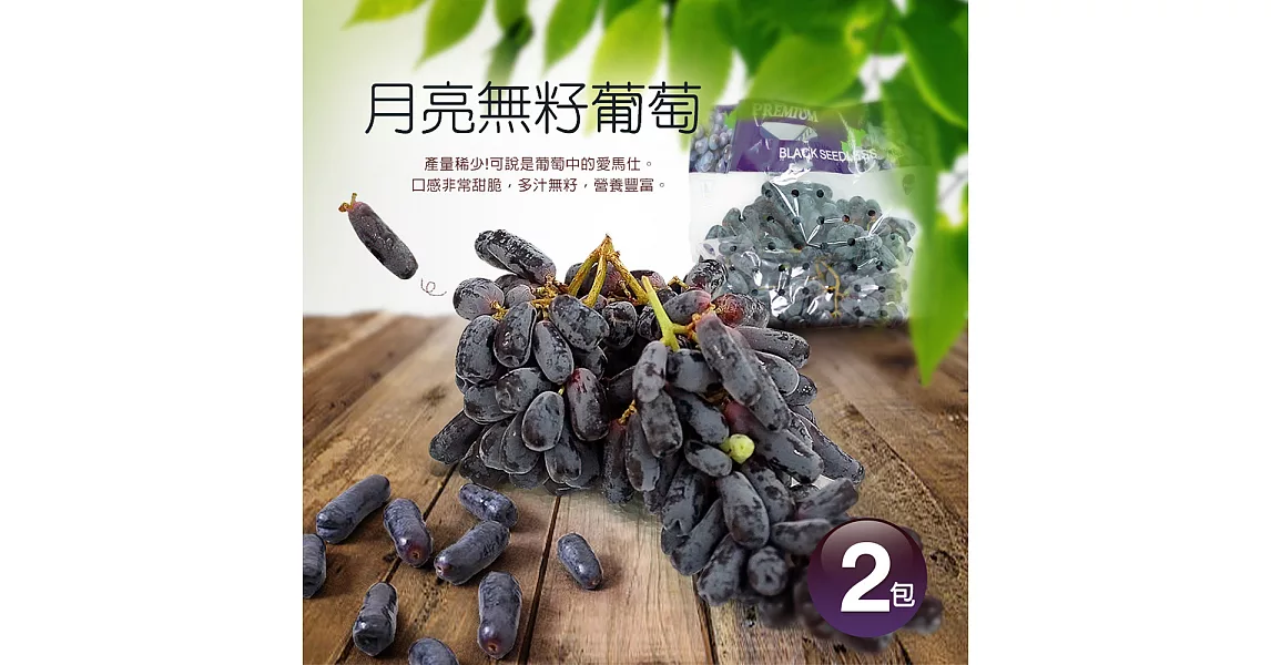 商品描述: 【優鮮配】月亮無籽葡萄2包(1kg/包)免運組