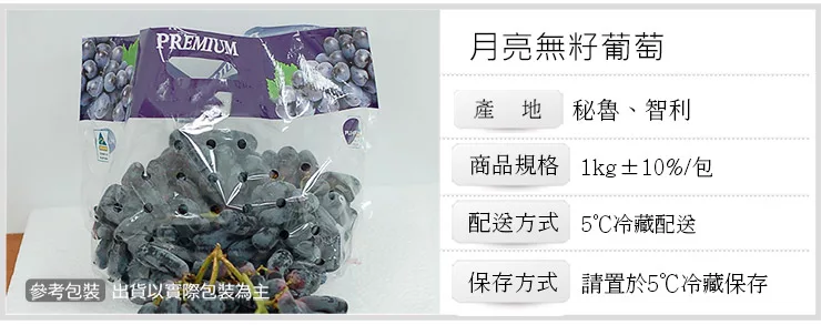商品說明: 【優鮮配】月亮無籽葡萄2包(1kg/包)免運組