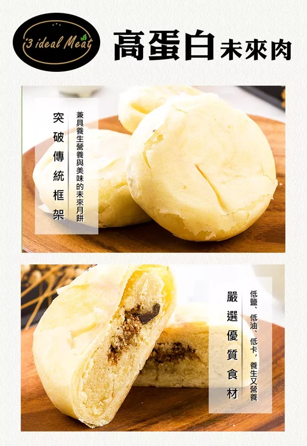 →→→→更多詳細”i3 ideal meat-中秋未來肉月餅-鹹綠豆椪禮盒1盒(8入/盒)9/21(一)~9/22(二)出貨”介紹請點我