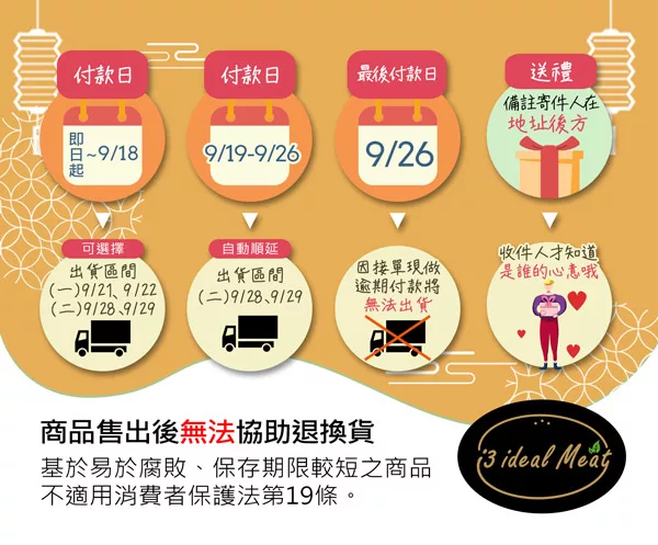 商品說明: i3 ideal meat-中秋未來肉月餅-鹹綠豆椪禮盒1盒(8入/盒)9/21(一)~9/22(二)出貨