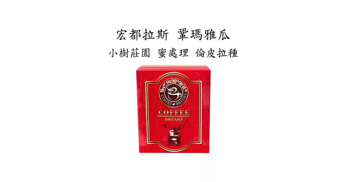 商品說明: 【CoffeeBreaks】宏都拉斯 鞏瑪雅瓜 小樹莊園 蜜處理 倫皮拉種(10gx10包入)