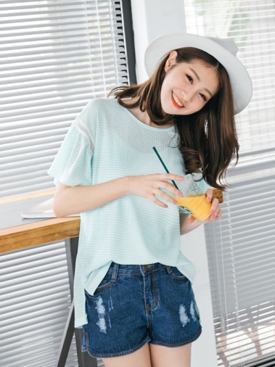 →→→→更多詳細”配色條紋拼接荷葉袖傘襬上衣.2色”介紹請點我←←←←←