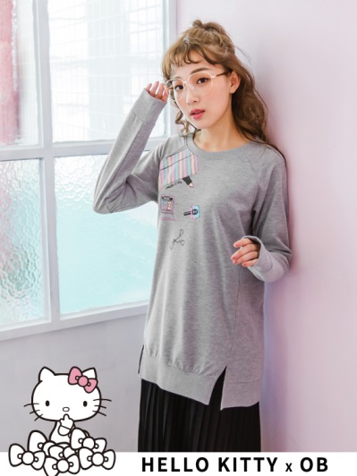KITTY撲克蝴蝶結印圖下襬開衩上衣