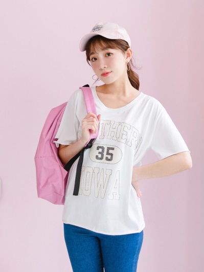 字母背號印花袖口衣襬破損感高含棉圓領休閒上衣.2色